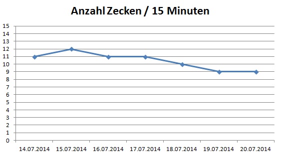 Innerhalb einer Viertelstunde müssen Sie durch die recht hohen Temperaturen und die Feuchtigkeit durch Schauer, wie auf unserem Bild,  mit 10-12 Zecken in 15 Minuten im Unterholz rechnen.